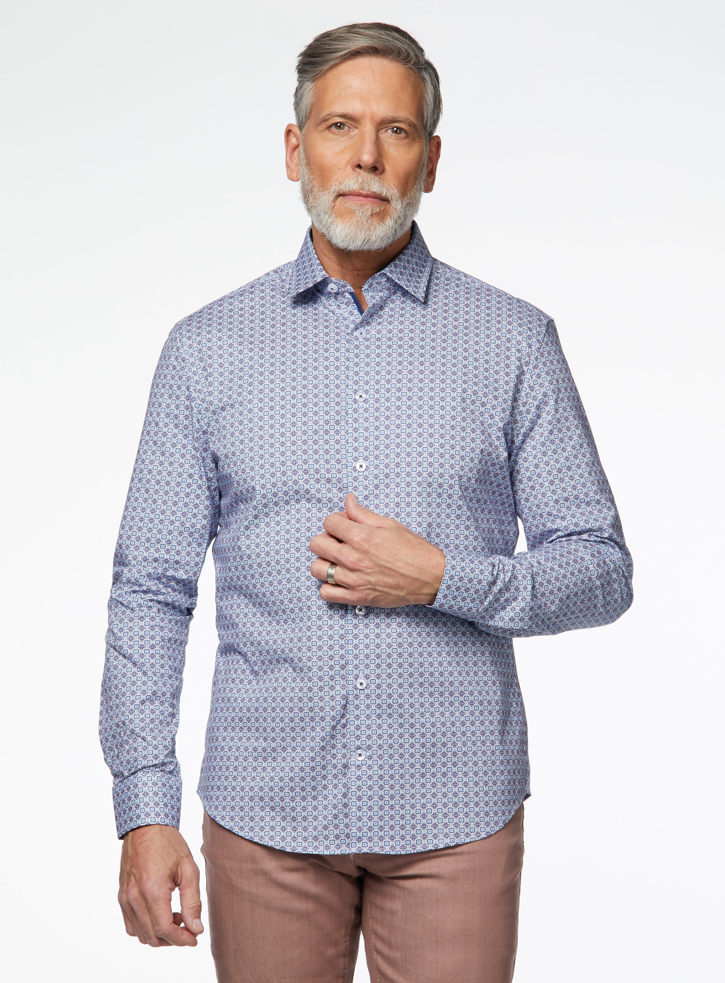 Chemise bleue à médaillons